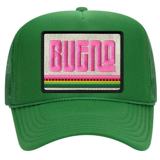 Say hello to our newest Port Sandz trucker hat with a colorful design that highlights vibrant pinks and fun patterns. Our eye-catching "Bueno" embroidered patch is ready to greet the world with a positive attitude. Life's bueno when the sun is shining and everything is going your way. Let's hold on to those feel good vibes.