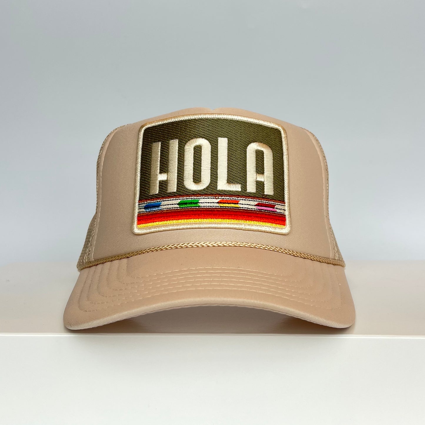 Say 'HOLA' to our Port Sandz trucker hat reminiscent of the sun drenched, sandy beaches of Mexico. Chill, laid back and super fun, the 'HOLA' design has just the right pop of color that won't go unnoticed and will be your go to hat for just about any occasion!