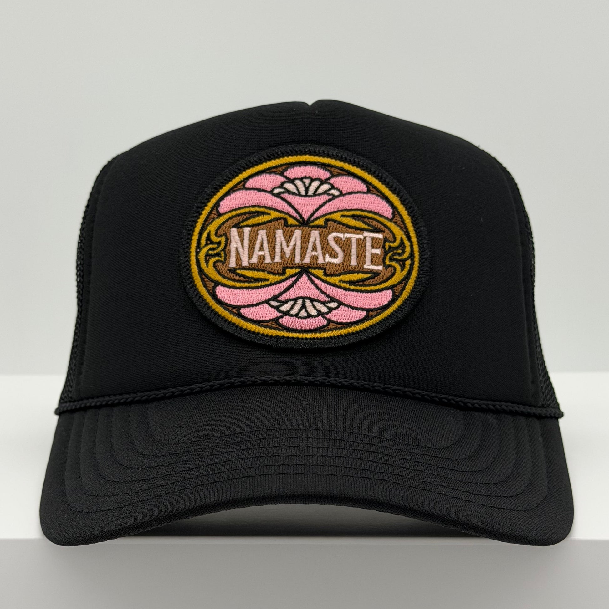 The Port Sandz 'Namaste' trucker hat design is available in 3 colors: