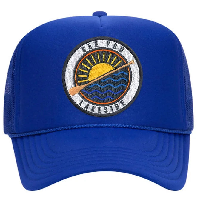 The Port Sandz 'See you lakeside' trucker hat design is available in 3 colors: